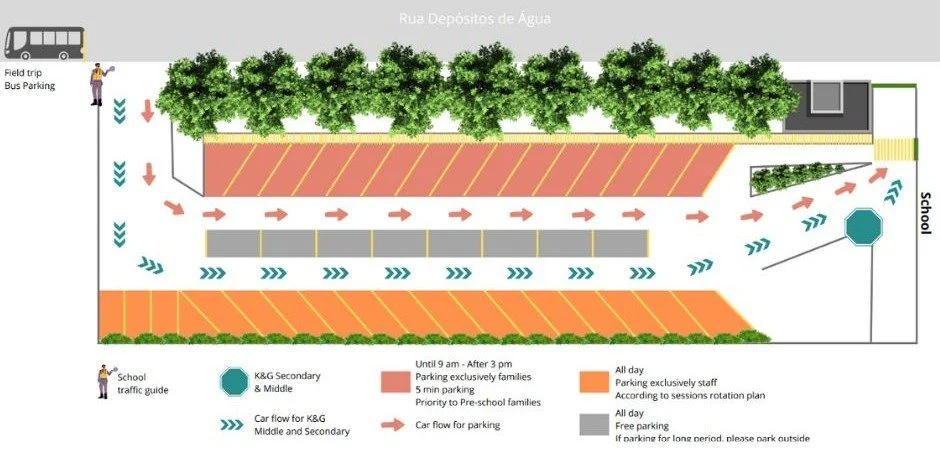 If you need to walk your child to class or go to the office, use the car park or designated public parking nearby.