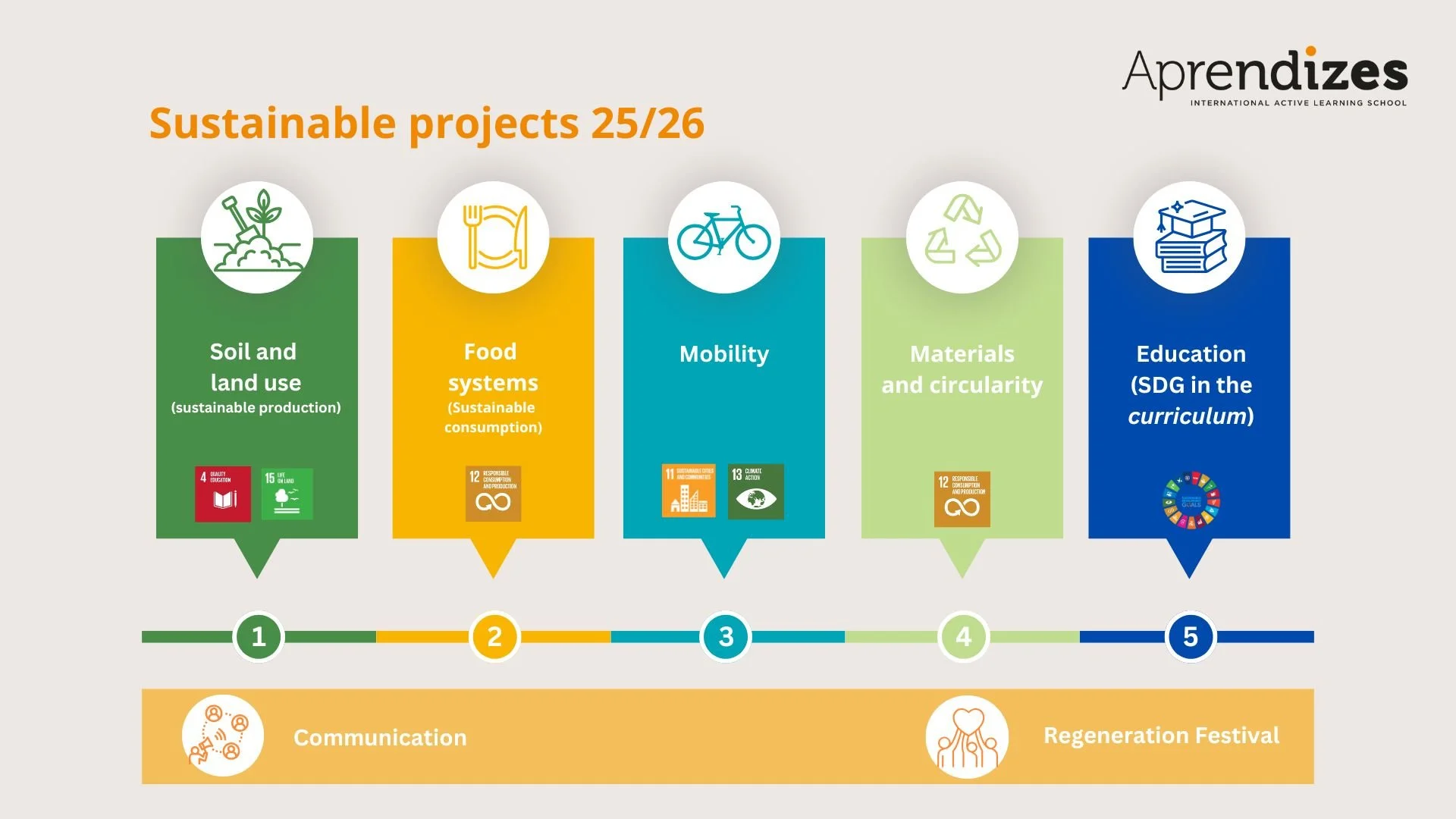 Over the past few years, students, staff, and families have joined efforts to grow and strengthen our regenerative and circular practices: from sustainable production and consumption to waste prevention, mobility, and the integration of the SDGs into the curriculum. We know the journey is long, but we have already started. Below, you’ll find an infographic illustrating the projects that keep growing with us.