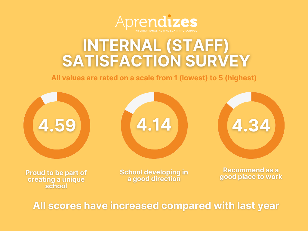 The latest survey results reflect a positive trend, demonstrating that efforts to create a supportive, collaborative, and inspiring environment are making a real difference. Aprendizes is proud of its staff for their dedication, passion, and commitment to shaping a school where everyone can thrive.