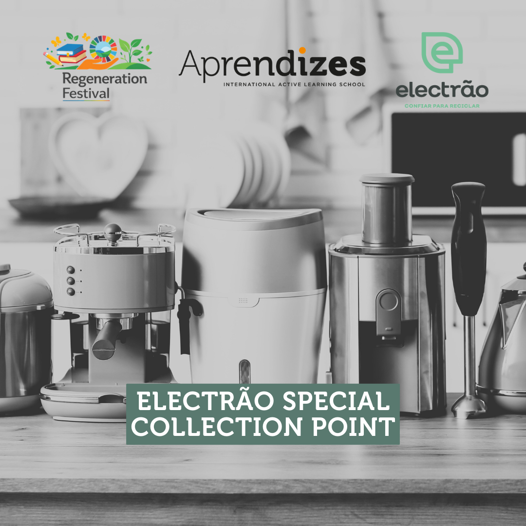 Durante a próxima semana, no âmbito do Regeneration Festival, teremos na entrada um ponto especial de recolha, em parceria com o Eletrão, para pequenos eletrodomésticos e pilhas. Mantemos também a recolha habitual de tampas e escovas de dentes.