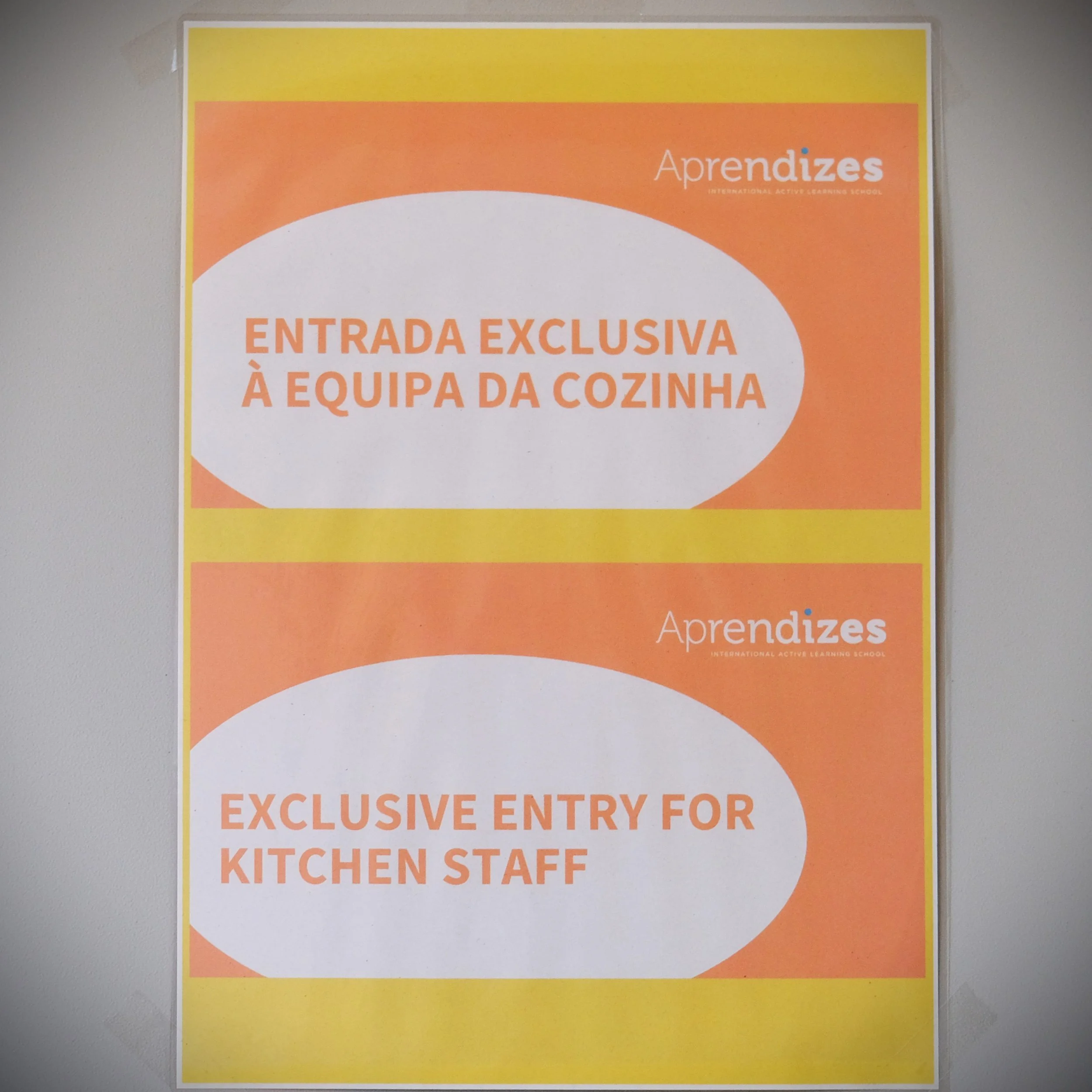 A entrada na cozinha pela porta do corredor está proibida a todos os que não pertençam à equipa da cozinha. Obrigado por respeitar esta regra e ajudar a manter segurança e higiene.