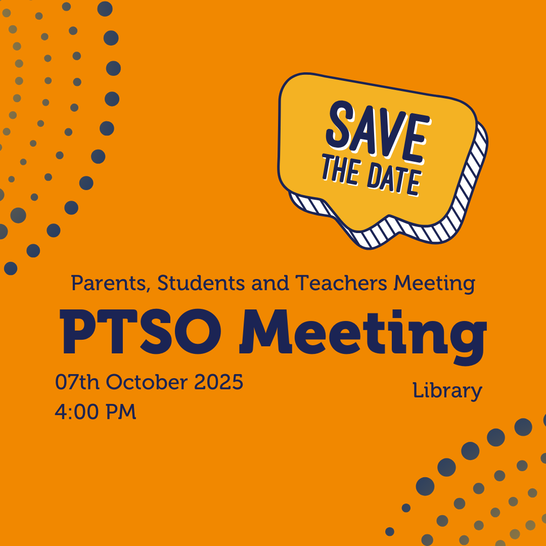 A próxima reunião da PTSO (Parents, Teachers and Students Organization) terá lugar no dia 7 de outubro de 2025, às 16h00, na Biblioteca.